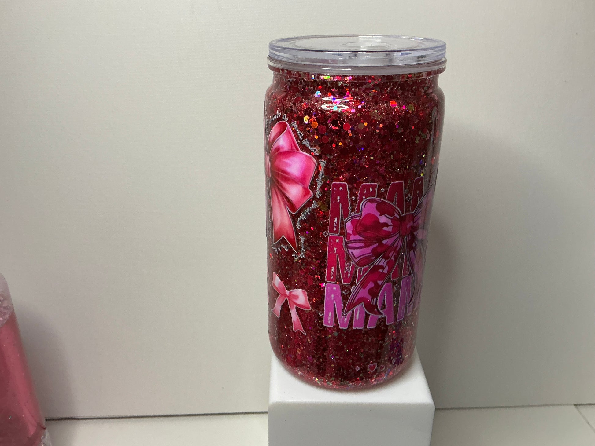 16oz Snowglobe Tumbler Pink Mama and Bows