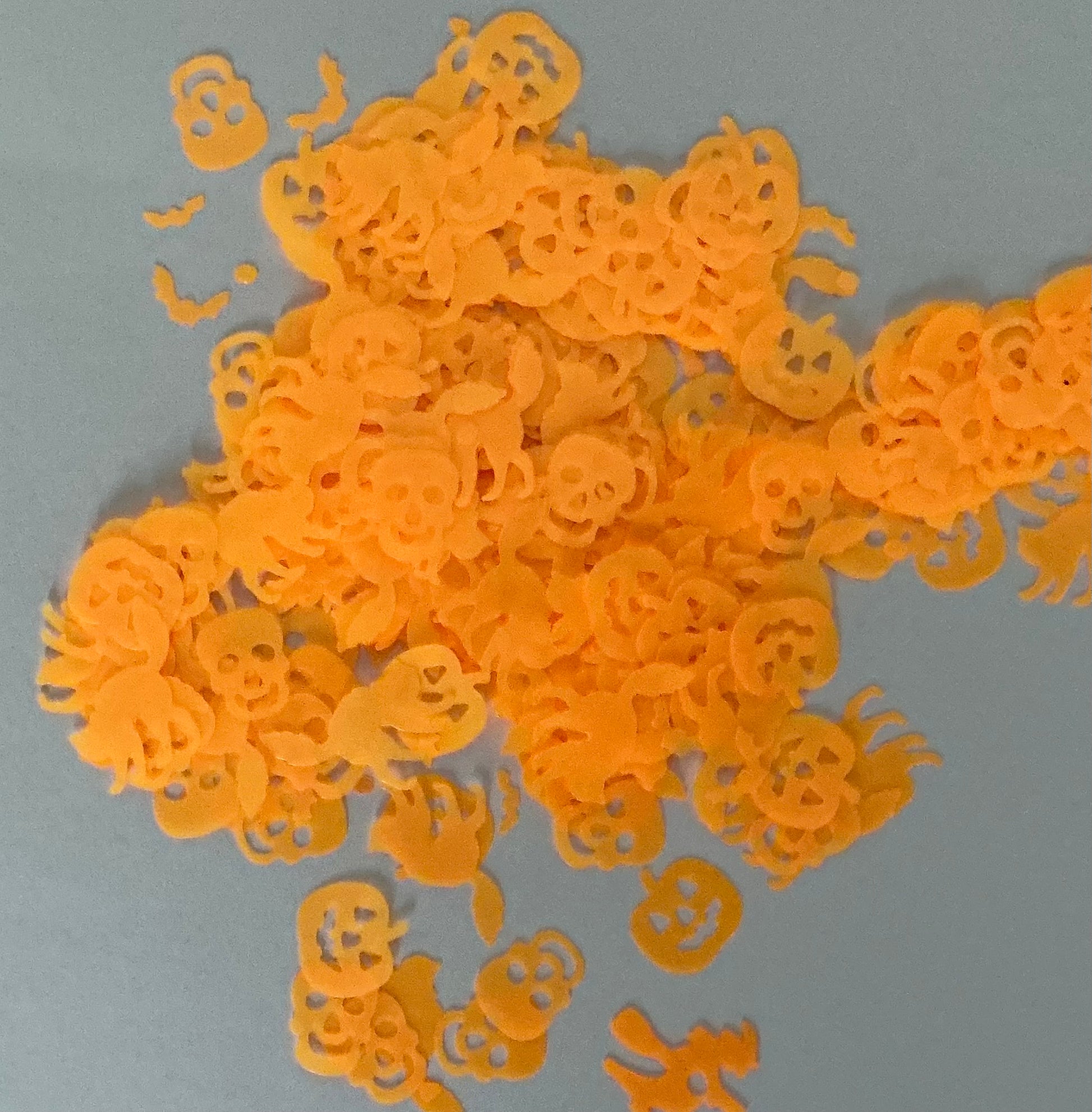 Pumpkins, skulls, ghosts and Ghouls shape mix sparkling glitter - Bright Orange