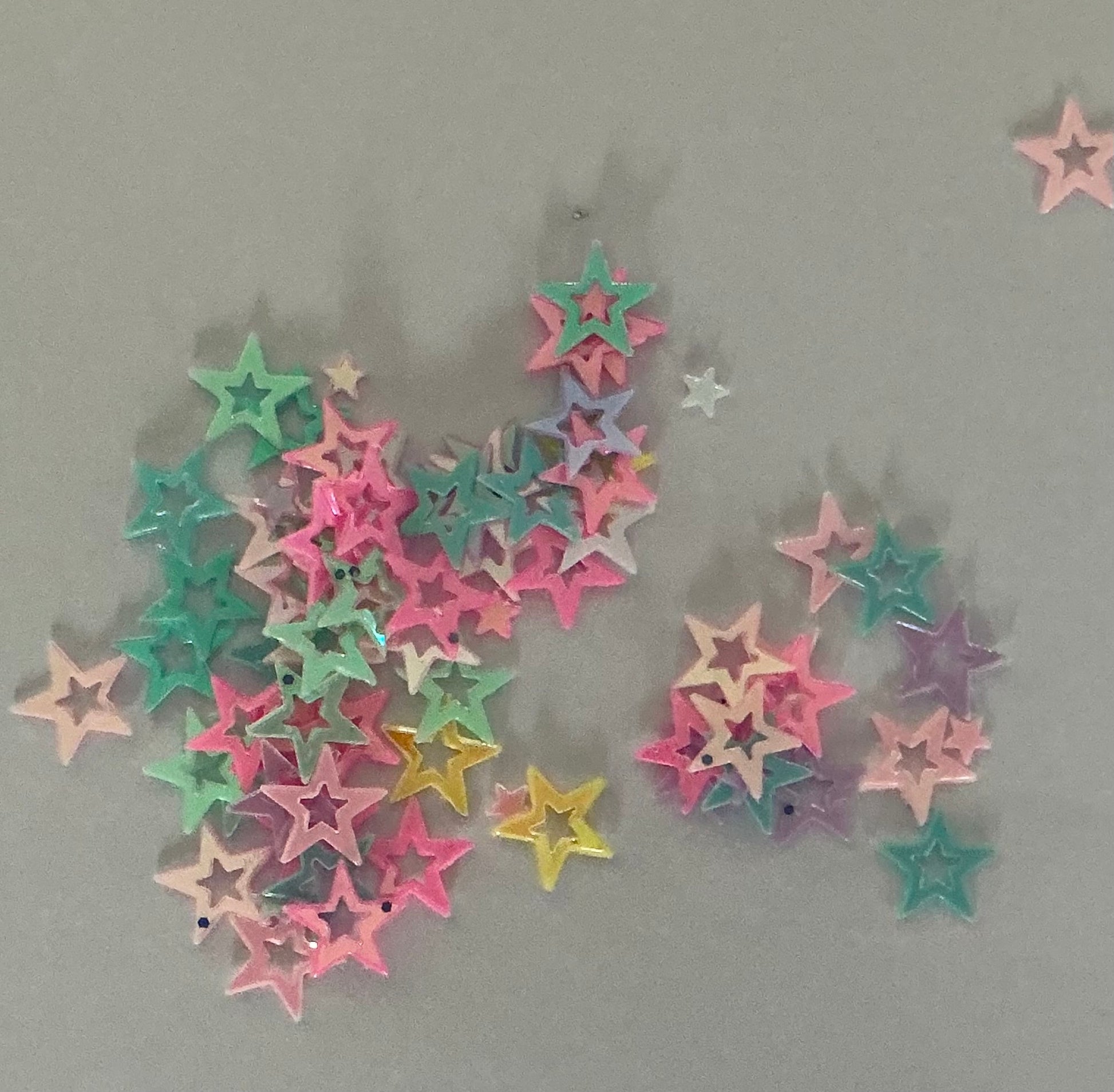 Size: 2.5/5mm Star, 3mm Cloud, 0.2/0.3/0.4/1/2.5mm star ⭐ mix (thickness: 16-50um)